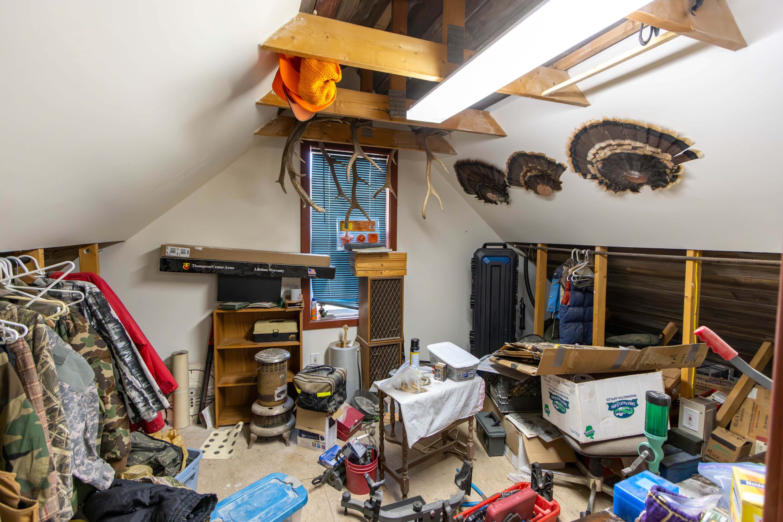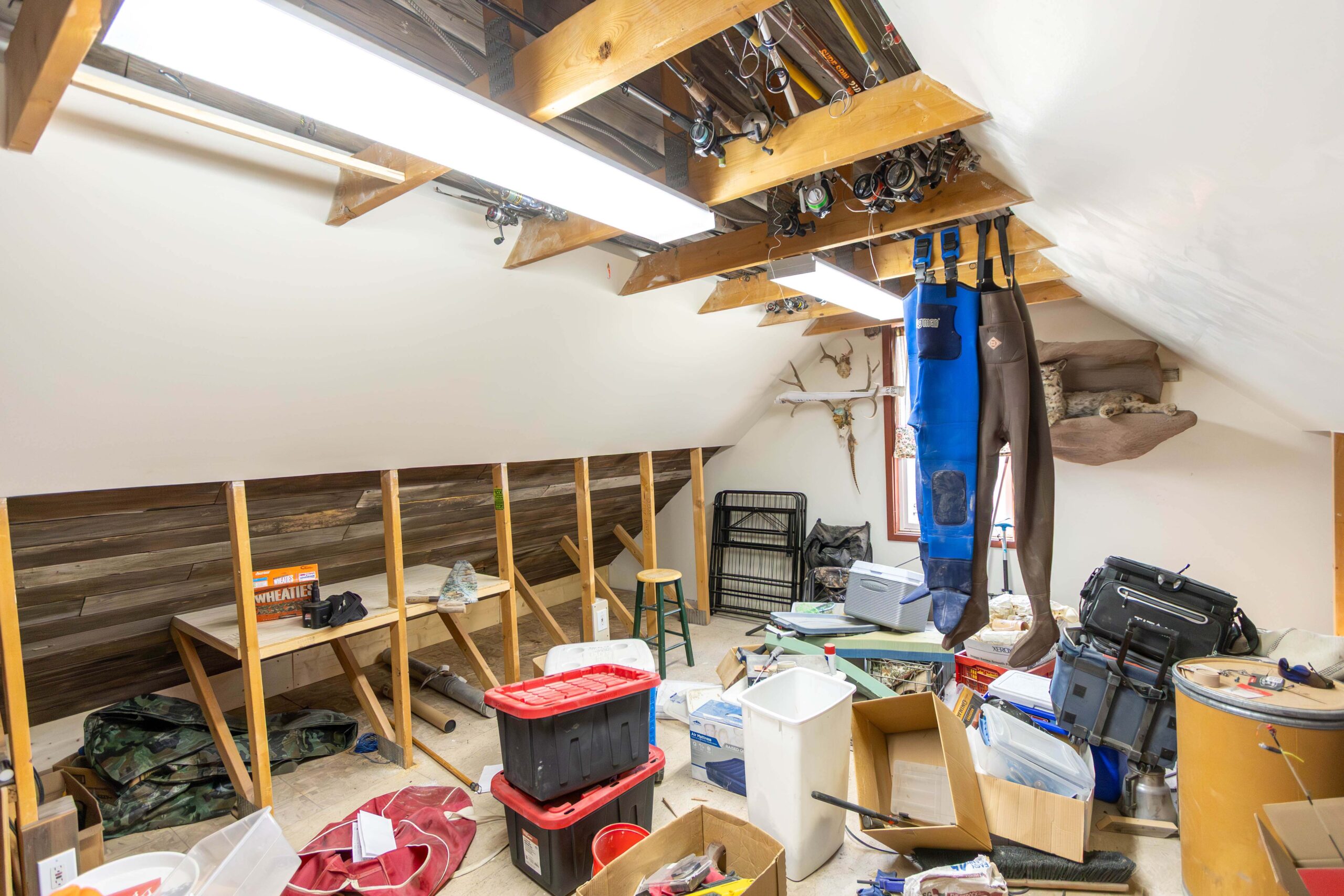 672 square foot detached garage built it 2002 with heated half bath and a finished loft upstairs. Garage will easily accommodate two vehicles plus ample storage space and work area.